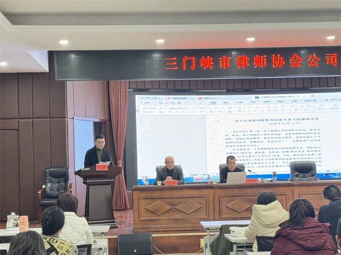 为进一步提升我市律师在公司法领域的实务操作与理论水平,精准把握司法审判前沿动态,2025年12月13日上午9时,由市律师协会主办、市律协公司法专业委员会承办的专题法律讲座——“公司类纠纷视角下审判实务若干问题的争鸣”在市司法局报告厅圆满举行。讲座由公司法专业委员会副主任黄星徽主持,活动伊始,三门峡市律师协会副会长高原对到场律师的学习热情进行肯定,同时也对活动成果寄予厚望。本次讲座吸引了全市近百名律师同仁踊跃参与,现场座无虚席,学习研讨氛围热烈。