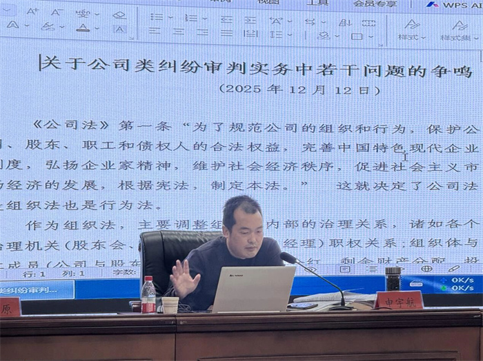 讲座内容紧扣实务,聚焦于“股权代持的效力认定与风险防范”“公司对外提供担保的审查要点与责任边界”“公司设立过程中的法律性质与责任主体界定”以及“股东瑕疵出资责任认定与追偿路径”等核心议题。申庭长生动剖析了审判实践中如何认定事实、适用法律、平衡利益,注重追本溯源,将复杂的实务操作与相关法条的精义及背后的法理逻辑紧密链接,层层递进,条分缕析。